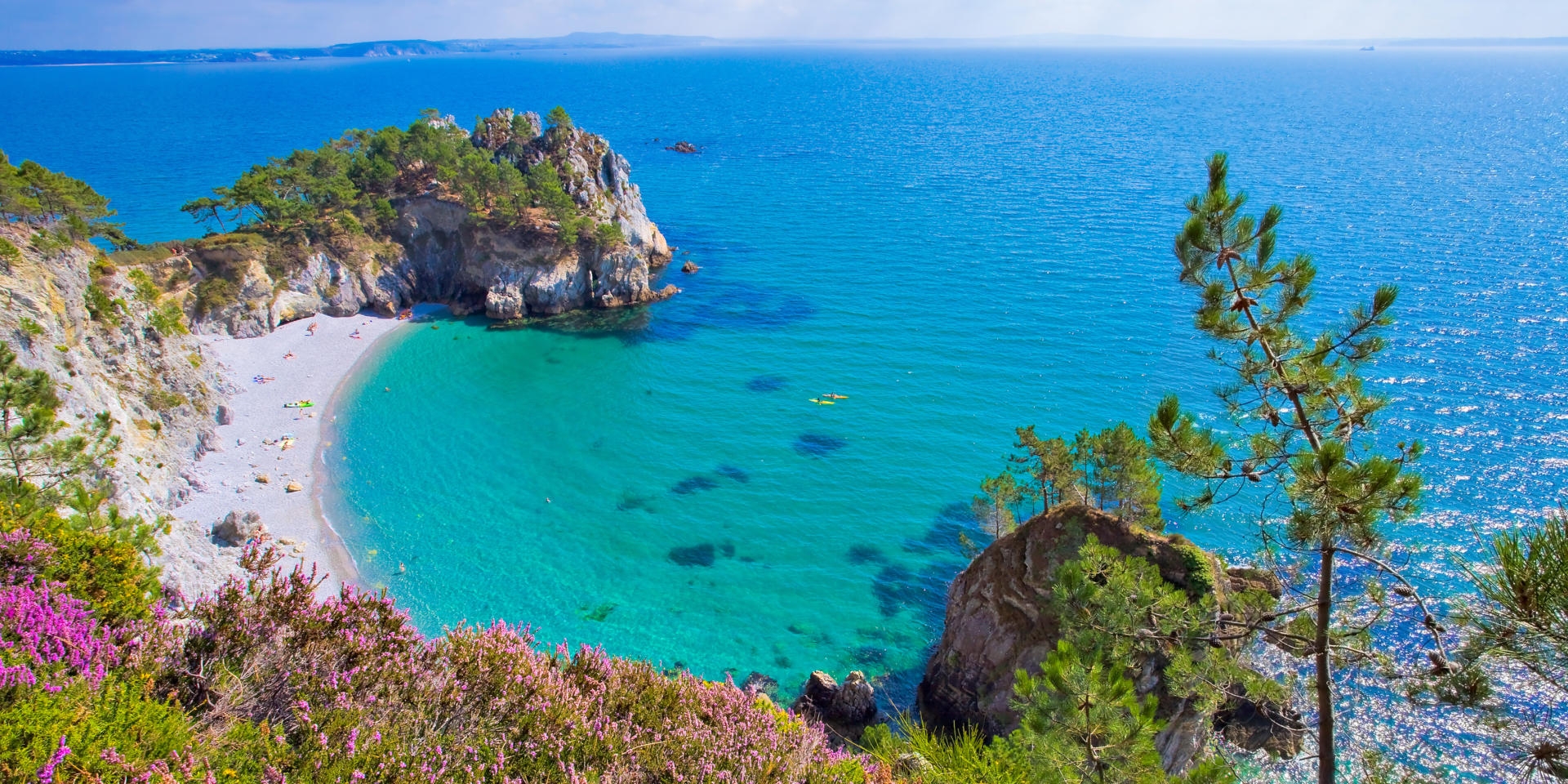 청록색 바다로 유명한 글레낭 제도(Glénan Archipelago)와 여행의 출발점인 푸에낭(Fouesnant).